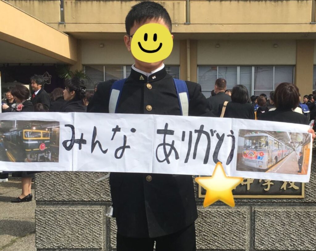 長男は中学卒業式で「みんな、ありがとう」と書いた手作りの横断幕を持って門を出ていき、高校では生徒会長に。