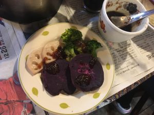 あと、しょうゆソースも教わりました。蒸し野菜にかけるととても美味しい!!