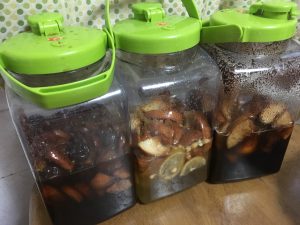 3ヶ月熟成手作り酵素ジュースできました。 この果物たちを 農薬など除去し その後切って 容器に てんさい糖とミネラル水、フルーツを入れます 左は白い甜菜糖。 あと二つは黒い甜菜糖。 こうなりました フルーツはヨーグルトなどに混ぜて食べようかな。ケーキ作るかな 液体部分と炭酸水 こうやって頂きます。 まじうまい!! お酒っぽいような感じ。 飲み過ぎないようにしないと。 せっかく1ヶ月に7キロ減量成功したので♡ これはまた後日。