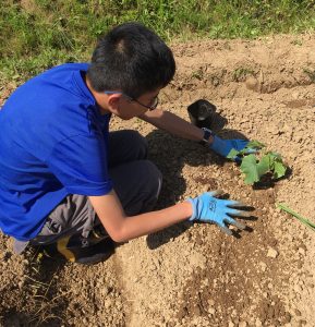 その他、ナスやゴーヤなども植えました。こちらも支柱、コンパニオンプランツありです。